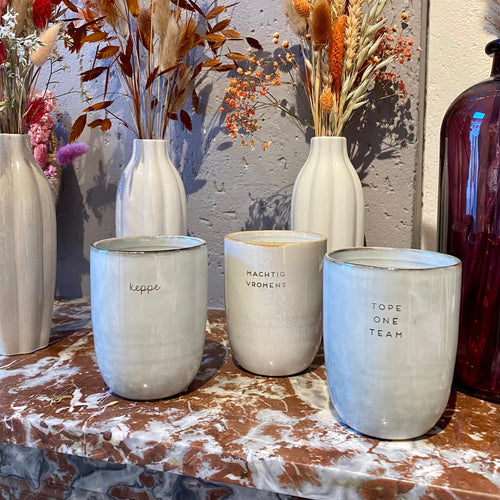 We hebben een heel gevarieerd aanbod met wenskaarten, servies, kids, sneukelingen, decoratie,